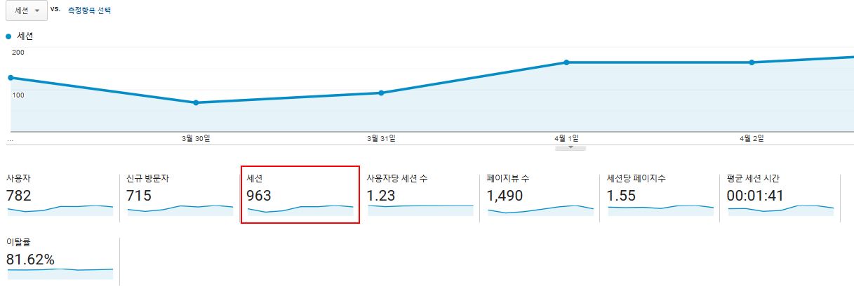 한 가지 알아둬야 할 세션의 특징은 랜딩 페이지에서만 숫자가 카운팅 된다는 점이다.