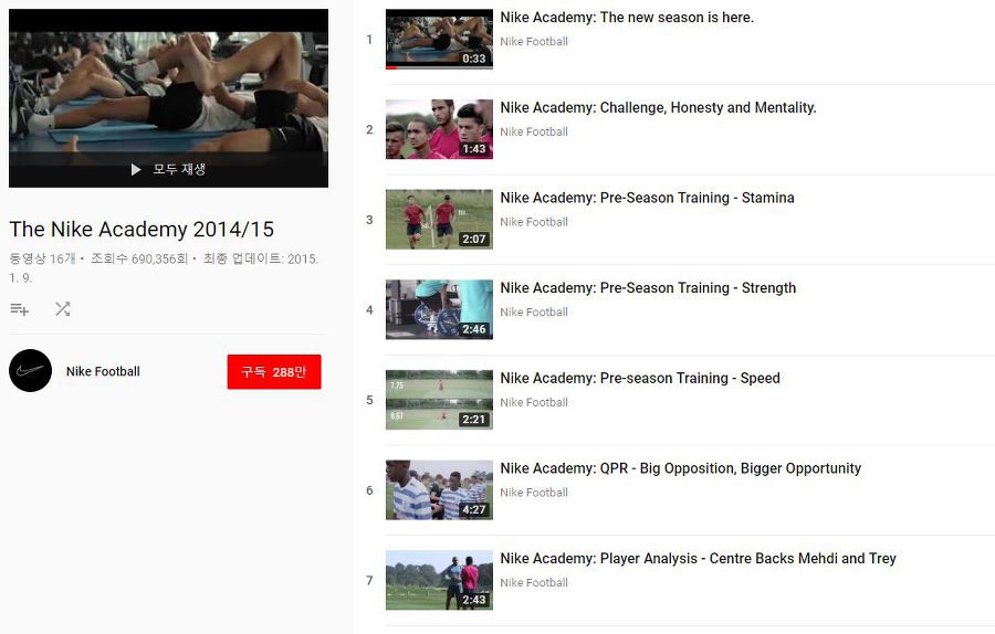 나이키는 이에 그치지 않고, 축구 선수들이 어떻게 기술을 향상할 수 있는지 알려주는 "Nike Academi"시리즈를 지속적으로 올렸고, 이후 Nike Academi는 조회 수 50만 건 이상을 기록하는 등 흥행을 이어갔다.